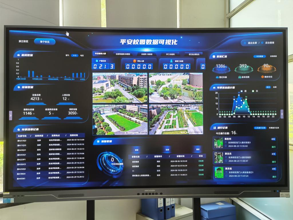 升级手段、数字赋能,提升管理水平。以人防为基础,以技防为重点,以物防为保证,全面提升“三防”建设水平。2024年以来,全面推进智慧安防系统提升和维护改造,构建指挥中心、高清视频监控系统、智能访客系统、智慧消防系统等智安校园综合应用平台,推动校园安全工作体系化、智慧化建设。两校区安防系统互通和汇聚,新装300多个监控点位,实现重点区域存储90天。新装道路升降柱13个,电动车充电桩10个,室外一键报警柱6个,人行道闸系统、车闸道闸系统、一键报警系统等接入当地公安系统,加强数据赋能整体智治水平。6月-8月,保卫处联合相关部门积极推进两校区消防(宿舍实训室烟感、防火门等)提升专项建设、滨江校区大门改造、两校区电动车停车棚升级、滨江校区竹林停车场建设、两校区围墙加高、滨江校区车辆测速设备加装、退役士兵之家建设等项目。