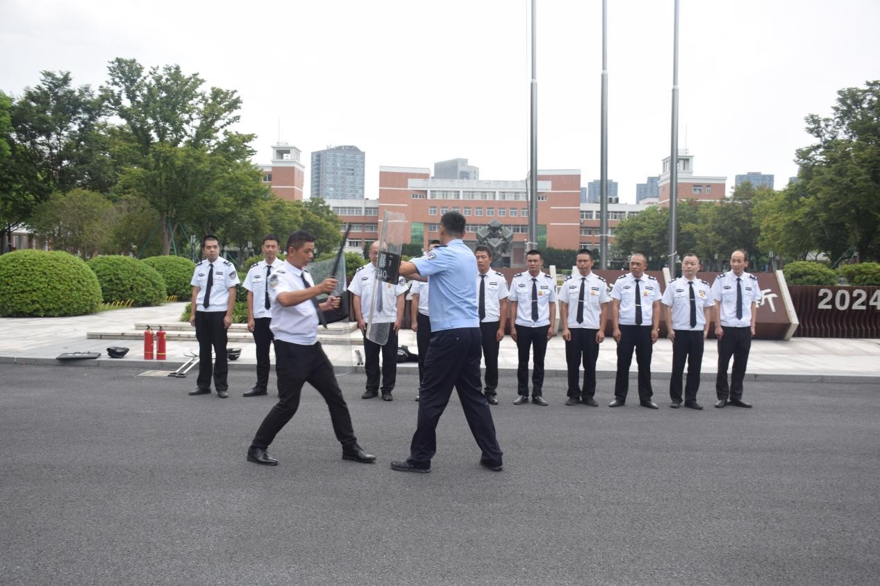 在反恐培训中,浦沿派出所周警官现场讲解防范应对校园突发性事件的基本技巧,详细传授了警棍、盾牌、防暴叉等器材的使用方法。通过互动式教学演示,重点讲解了应急处突过程中人员分工配合、站位等动作要领、技巧以及注意事项。同时,组织安保人员进行防暴器材实操演练,出现问题现场给予纠正。