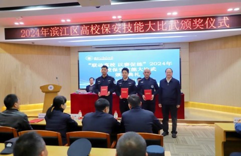 杭州市公安局经济文化保卫大队、杭州市公安滨江分局基层基础管理大队、浦沿派出所负责同志以及各参赛安保队伍人员参加颁奖仪式。