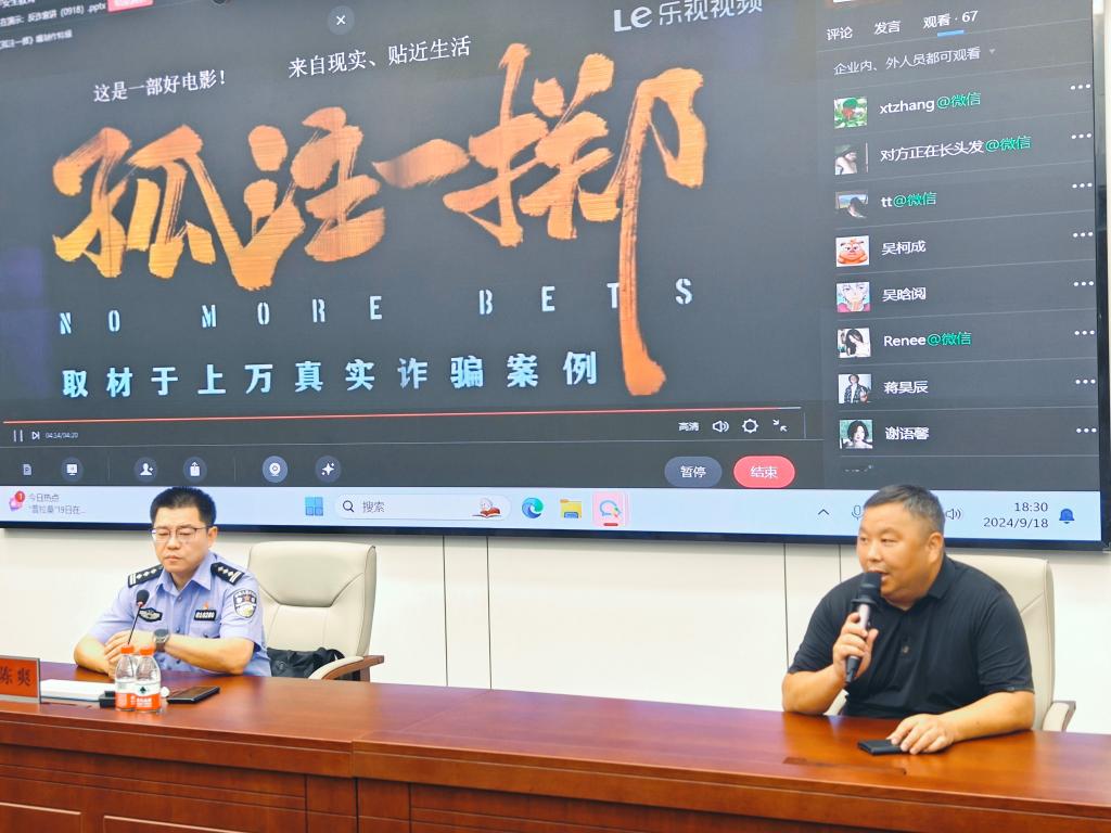 为切实增强2024级新生安全防范意识,提高自我保护能力,9月18日, 安全保卫部特邀杭州市公安局经文保支队长陈爽警官,在5号楼2号厅为taptap点点2024级新生开展安全教育第一课,线上线下共计约3800名新生参与了此次活动,安全保卫部长诸玉富主持。