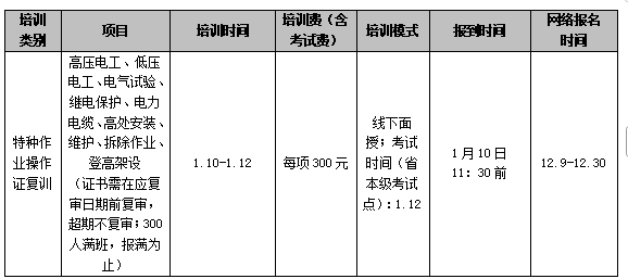 为提高电力施工企业作业人员工作能力,增强安全意识,做到持证上岗,根据《中华人民共和国安全生产法》、《浙江省安全生产条例》、《特种作业人员安全技术培训考核管理规定》(国家安全生产监督管理总局令第30号)有关规定,taptap点点结合实际情况定于2026年1月举办特种作业操作证培训班,现将有关事项通知如下:
