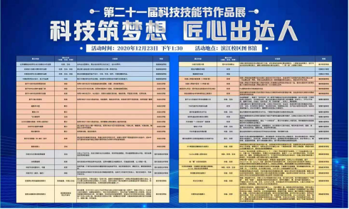 12月23日下午,以“科技筑梦想,匠心出达人”为主题的第二十一届科技技能节作品成果展在滨江校区图书馆大厅举行,各分院布展项目44项,展品千余件。学校党委副书记周增逵出席了本次活动,相关部门负责人、二级学院总支书记、辅导员及师生1000余人参加了活动。