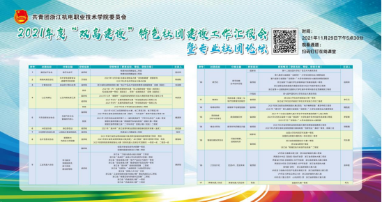 11月29日晚,2021年度特色社团建设工作汇报会暨专业社团论坛在线上成功举办,来自8个分院的17个专业社团通过钉钉课堂向两校区师生展示专业社团的建设风采。