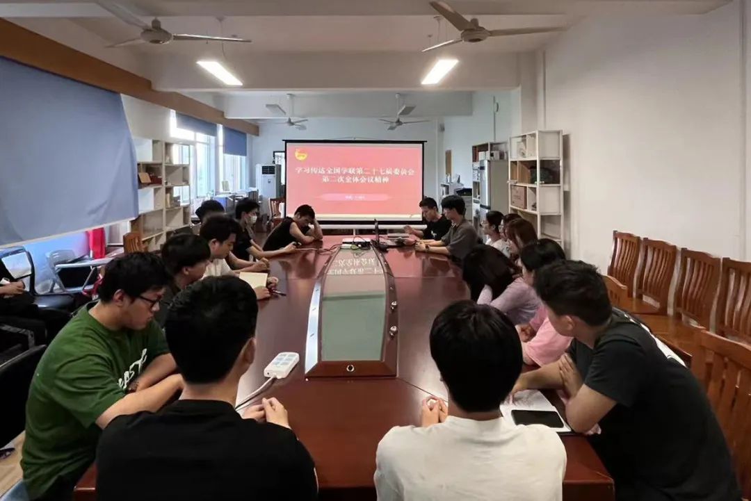 为深入学习贯彻党的二十大精神,团结带领广大同学坚定跟党走、奋进新征程,进一步提升学生骨干政治素养,6月1日下午,学校学生会召开专题学习会,集中学习传达全国学联第二十七届委员会第二次全体会议精神,本次会议由校级学生会主席团执行主席胡维文同学主持,校学生会、各二级学院主席团学生骨干代表参加本次学习会。