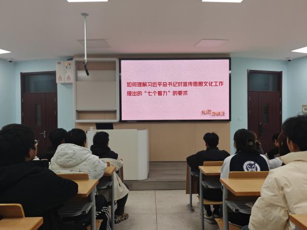 在学习贯彻习近平新时代中国特色社会主义思想主题教育专题学习会、学生骨干培训上,团委老师强调:今年是贯彻落实党的二十大精神的开局之年,在全党深入开展学习贯彻习近平新时代中国特色社会主义思想主题教育,是党中央用党的创新理论统一思想、统一意志、统一行动,动员全党同志为完成党的中心任务而团结奋斗所作的重大部署。全体团学成员要提高政治站位,深化对主题教育意义的认识,要从拥护“两个确立”、做到“两个维护”的高度,深刻认识统一思想和行动的重大意义;从中国式现代化赋予大学强国使命的高度,深刻认识担当作为的前进方向,要切实增强政治责任感和历史使命感,以更高标准、更严要求走在前列,当好标杆表率,发挥榜样引领。