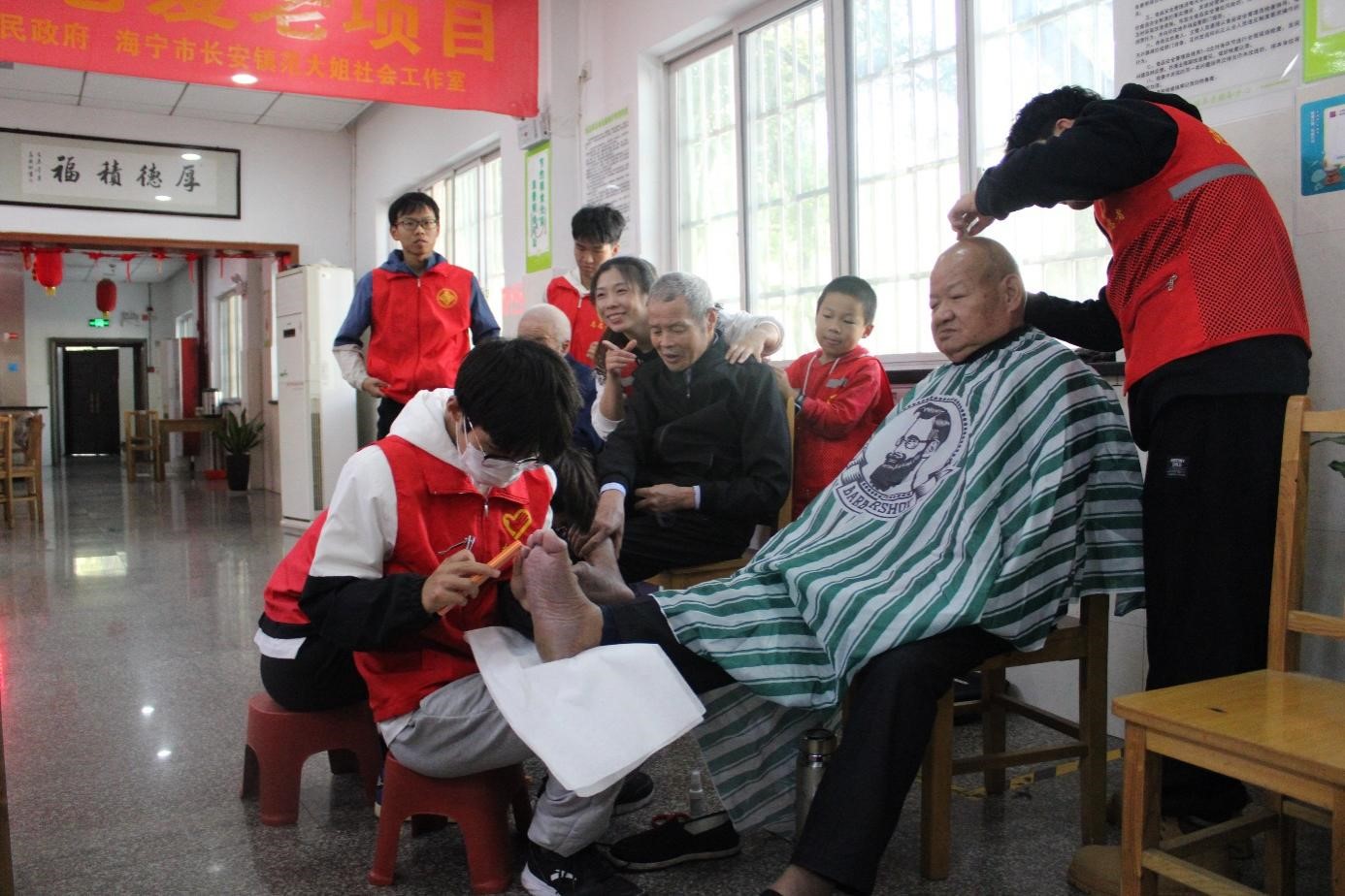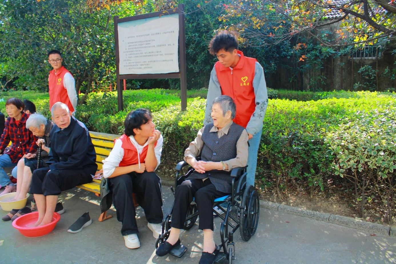 10月21日,校团委、校学生会、青年志愿协会组织30名青年志愿者来到海宁市金陵康乐园开展敬老志愿服务,为老人们理发剪指甲、按摩护理、谈心交流,志愿者们与老人们共沐暖阳,共赏秋景,共庆重阳。校团委志工部负责人刘腾辉同学表示:“这是我第五次参加慰问老人的活动,作为一名大学生,我很感恩祖辈为我们创造了现在的美好生活,我们青年一代要铭记历史,感恩先辈,同时珍惜当前来之不易的幸福祥和,并继承和发扬老一辈的奋斗精神,为实现中华民族伟大复兴贡献青春力量。”