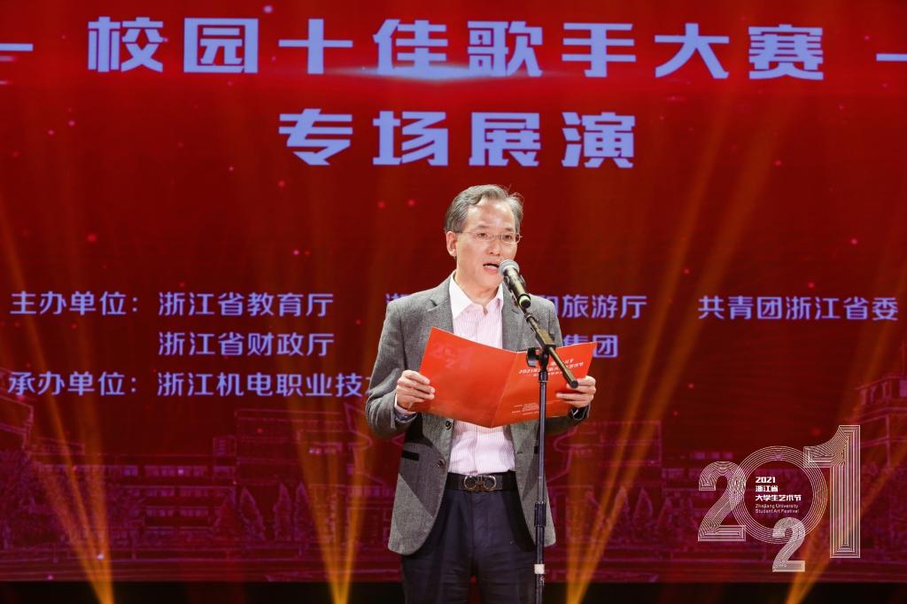 10月27日,2021年浙江省大学生艺术节校园十佳歌手专场展演在taptap点点举行,拉开了全省大学生艺术节现场展演活动的序幕。校党委副书记周增逵出席并致辞。