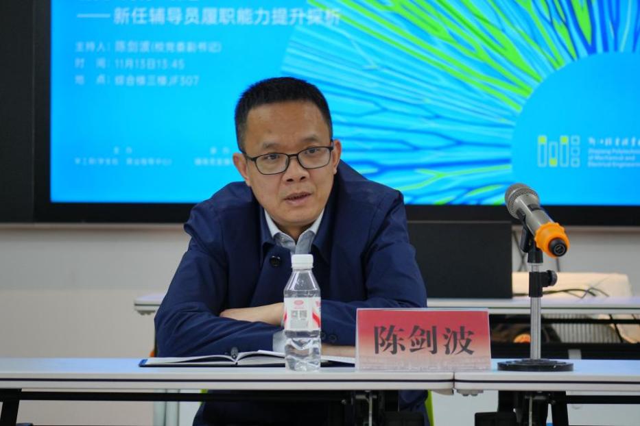 陈剑波寄语新任辅导员,要铸"引领"之魂,做学生思想的引路者;修"仁爱"之心,当学生成长的守护人;练"专业"之能,成为职业发展的践行者;持"笃行"之志,在深入学生中锤炼真本领;守"创新"之锐,把育人道理转化为生动故事,努力成为学生喜爱、学校信赖的优秀辅导员,为培养担当民族复兴大任的时代新人贡献智慧与力量。