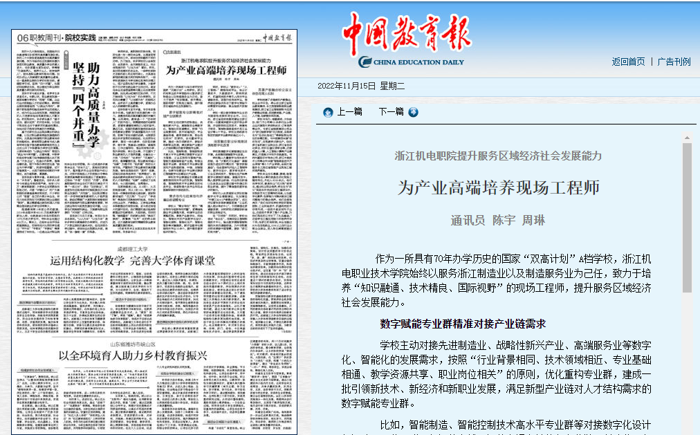 [凤凰新闻客户端]深入贯彻党的二十大精神 七秩华章再出发丨浙江机电职业技术学院科研工作巡礼:主动服务高水平科技自立自强 创新引领发展
