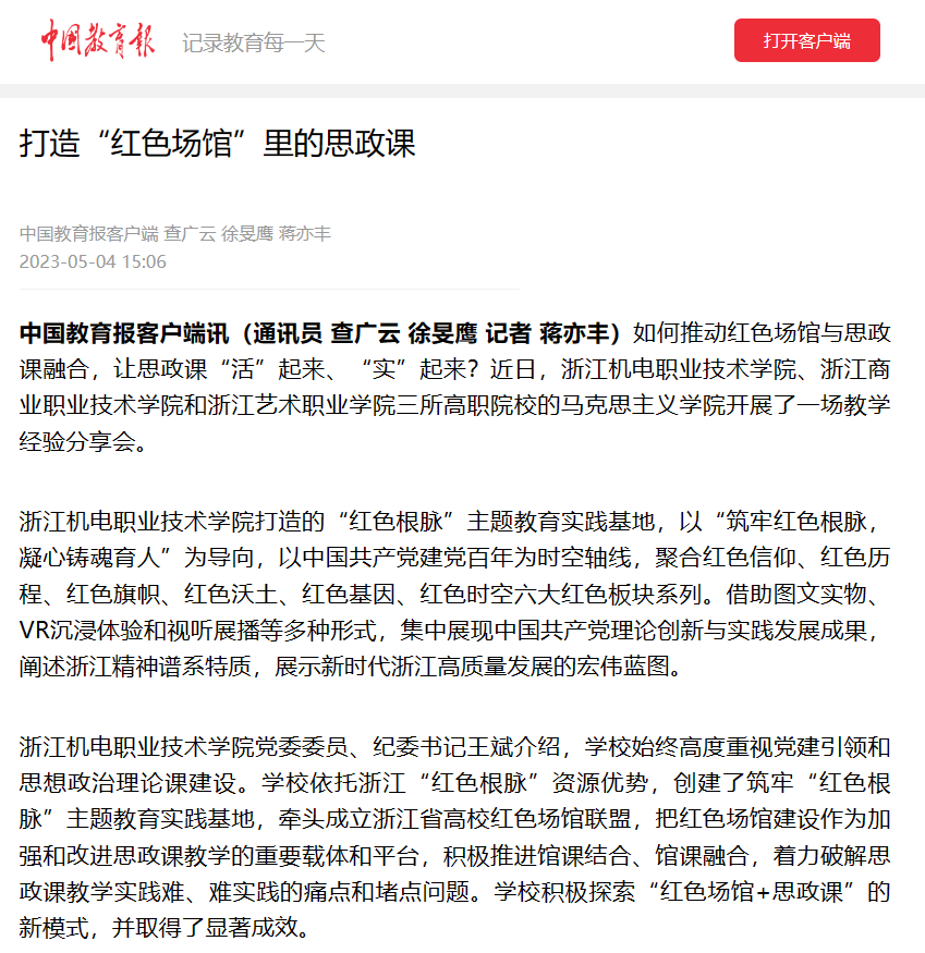 [学习强国 中国教育在线]浙江机电职业技术学院学生团队自主研发“便携式工业母机平直度标准测量装置” 助力我国装备制造业发展“换道超车”