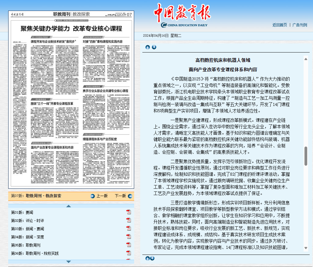 [中国教育报]聚焦关键办学能力 改革专业核心课程