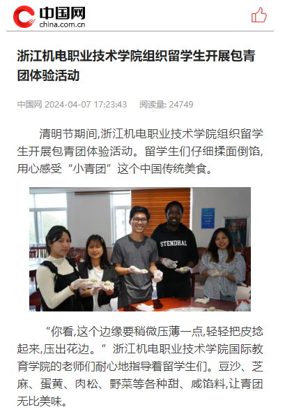 [中国网]浙江机电职业技术学院组织留学生开展包青团体验活动