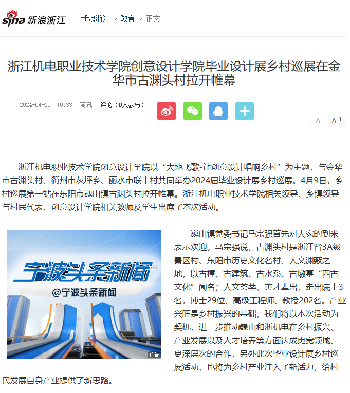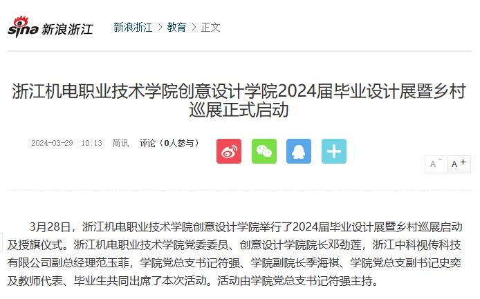 [新浪浙江]浙江机电职业技术学院创意设计学院2024届毕业设计展暨乡村巡展正式启动