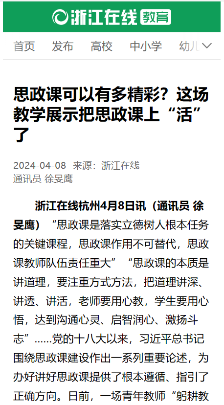 [浙江在线]思政课可以有多精彩?这场教学展示把思政课上“活”了