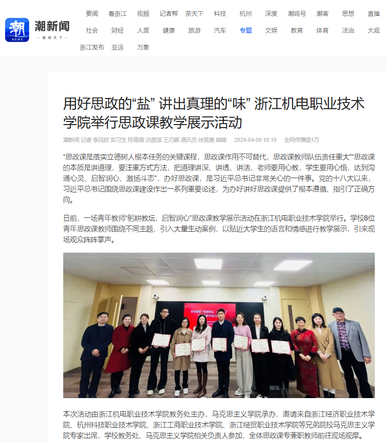 [潮新闻]用好思政的“盐” 讲出真理的“味” 浙江机电职业技术学院举行思政课教学展示活动