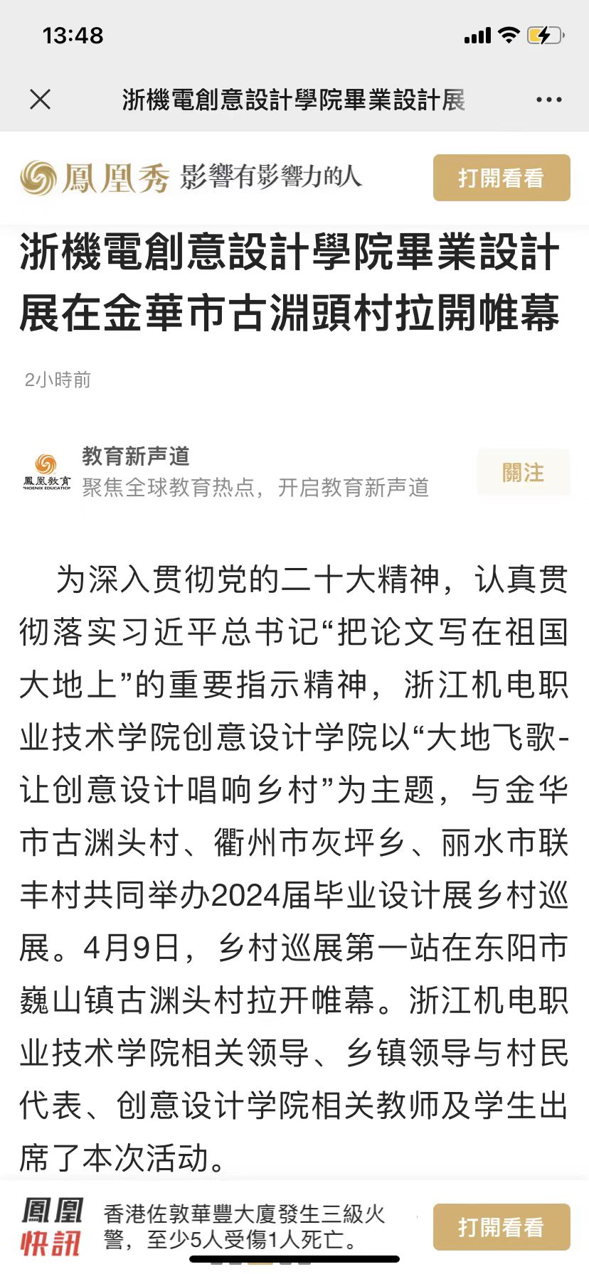 [凤凰秀]浙機電創意設計粵院畢業設計展在金華市古淵頭村拉開帷幕