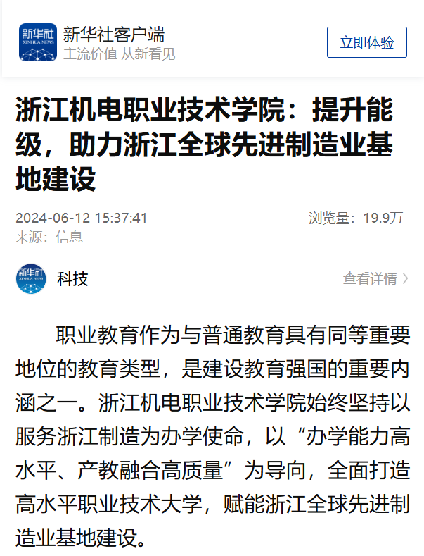 [新华社]浙江机电职业技术学院:提升能级,助力浙江全球先进制造业基地建设