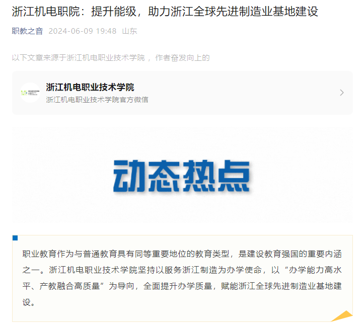 [职教之音公众号]浙江机电职院:提升能级,助力浙江全球先进制造业基地建设