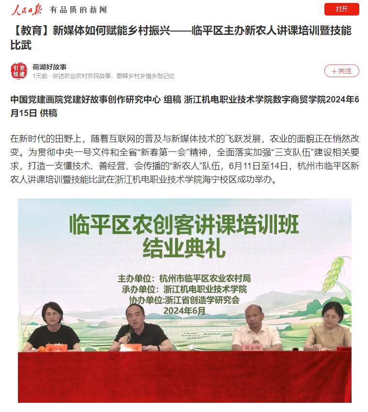 [人民日报客户端]【教育】新媒体如何赋能乡村振兴——临平区主办新农人讲课培训暨技能比武