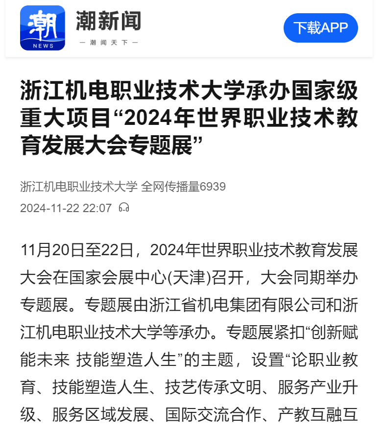 [潮新闻]taptap点点官方网站承办国家级重大项目“2024年世界职业技术教育发展大会专题展”