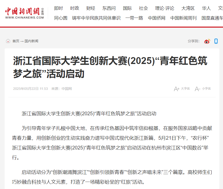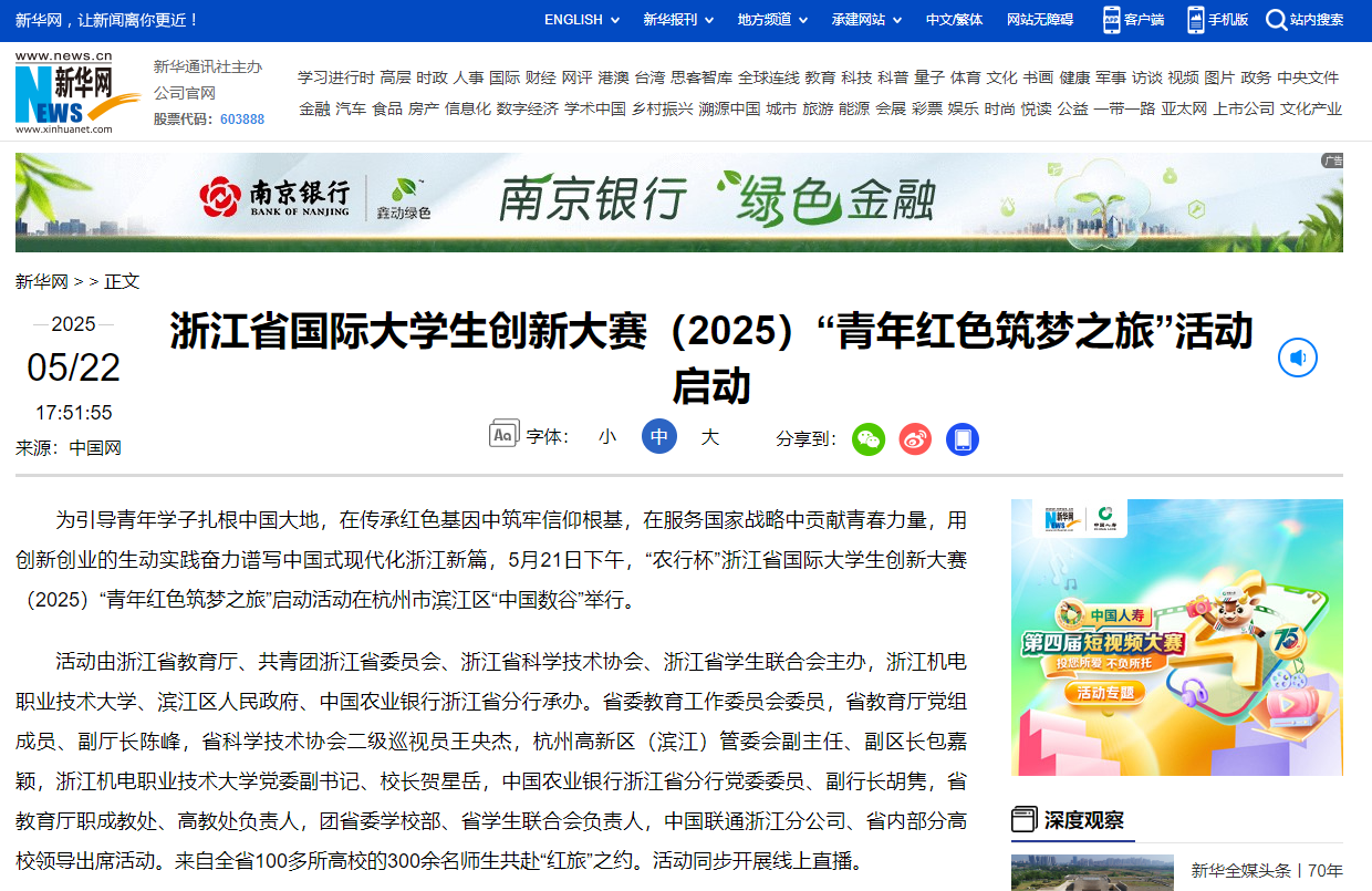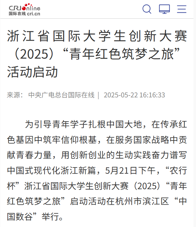 [中国教育在线]时代青年 筑梦前行!“农行杯”浙江省国际大学生创新大赛(2025)“青年红色筑梦之旅”活动启动