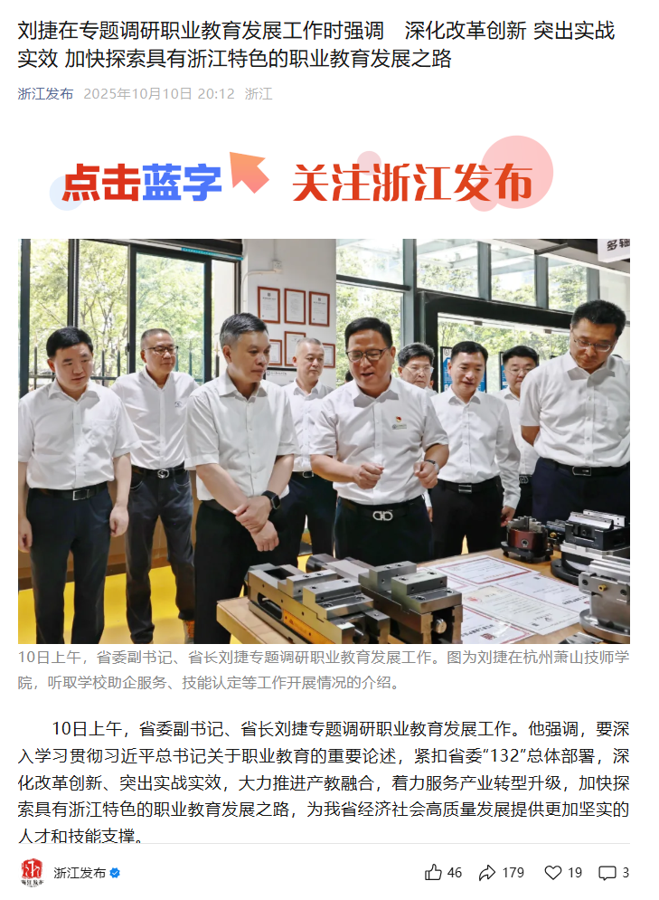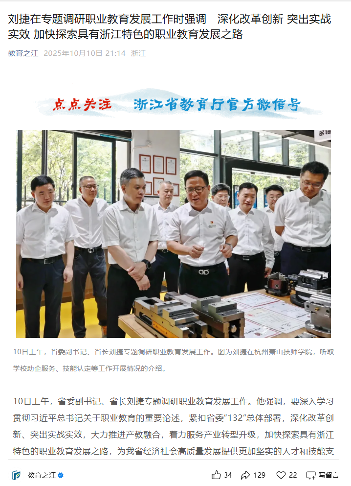 [浙江在线]刘捷在专题调研职业教育发展工作时强调 深化改革创新 突出实战实效 加快探索具有浙江特色的职业教育发展之路