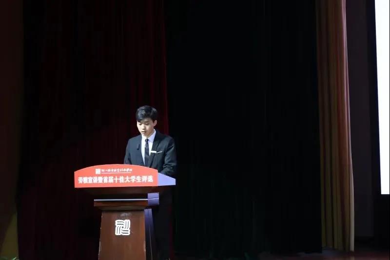 评选活动中20名在思想道德、学业科研、科技创新、非遗传承、社会实践等方面具有非常突出表现的候选人根据抽签顺序进行了限时五分钟的个人方风采展示,展现了他们各自大学期间奋斗成长的“硬核”足迹。他们用实际行动传递着青春能量和榜样的力量,赢得了现场观众一阵赛过一阵的掌声。经过激烈的角逐,电子1802王悦冰、模具1892翁景涛、模具1892苏子超、模具1791吴嘉欣、城电1803王逸钦、城电1802胡琦、材型1802张进、机器人1931余文龙、国贸1883周灵蓉、国贸1932吕婧怡10名同学获2021年浙江机电职业技术学院“十佳大学生”荣誉称号。