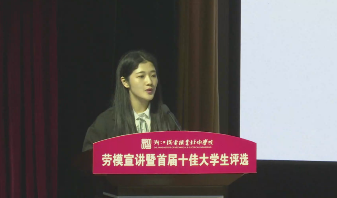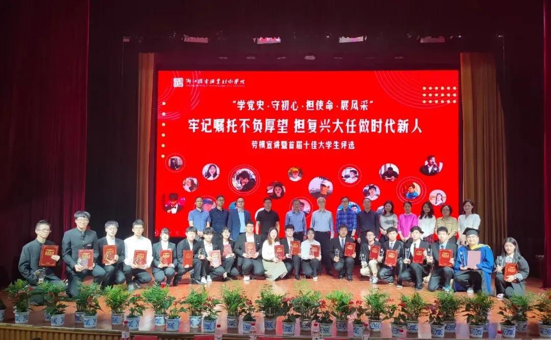 2021年5月18日晚,“学党史·守初心·担使命·展风采”劳模宣讲暨首届十佳大学生评选活动在滨江校区5号楼报告厅举行,校长贺星岳、党委副书记周增逵、学工部负责人、各二级学院党总支书记(副书记)、学工办主任、辅导员和学生代表出席活动。此次评选由浙江工商大学、中国计量大学等本科院校学工部部长,浙江商业职业技术学院、浙江艺术职业学院等高职院校学工部部长以及校内学工部、团委、招生就业处、马克思主义学院等部门代表担任评委。2021年“五一劳动奖章”、“浙江省劳动模范”获得者2005届杰出校友代表杨炯应邀参加活动并进行事迹宣讲。活动全程线上直播,海宁校区近四千余名师生通过网络全程观看。