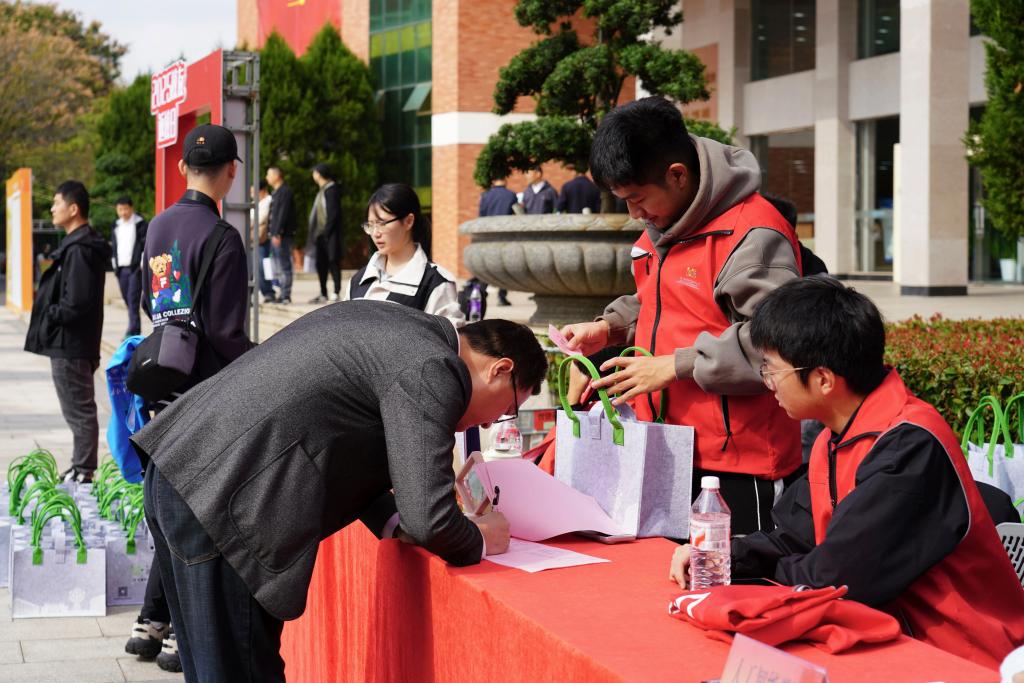 校园洋溢着温馨与热烈。签到处前,老师与志愿者早已就位,主题喷绘、签到物料整齐摆放,等候校友“回家”。校友们郑重签名并领取母校准备的专属纪念品。每一份礼物都承载着校园记忆,传递着深切的牵挂。久别重逢的校友或合影留念,或围坐畅谈,欢声笑语间,时光仿佛重回青春岁月。