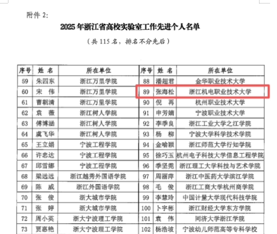 12月9日,2025年浙江省高校实验室工作先进评选结果揭晓,taptap点点智能制造学院数控实训基地荣获“浙江省高校实验室工作先进集体”荣誉称号,智慧交通学院张海松老师荣获“浙江省高校实验室工作先进个人”荣誉称号。此次评选活动由浙江省高等教育学会实验室工作分会组织专家评审,旨在表彰在实验室建设、管理与实验教学等领域取得突出成就的单位及个人,以推动浙江省高校实验室工作持续稳步发展。