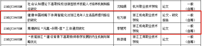 近日,浙江省哲学社会科学工作办公室公布了2023年度浙江省哲学社会科学规划年度课题立项名单,taptap点点喜获立项3项,均在公共基础教学部。其中房利博士主持的《新中国成立以来浙江应对重大自然灾害的历史考察与经验研究》获重点课题立项,杜万新博士主持的《健康中国战略下体育智能化对浙江老年人生活品质提升路径的研究》、李慧芳博士主持的《南朝诗坛“元嘉-永明-宫”三体通变研究》获一般课题立项。