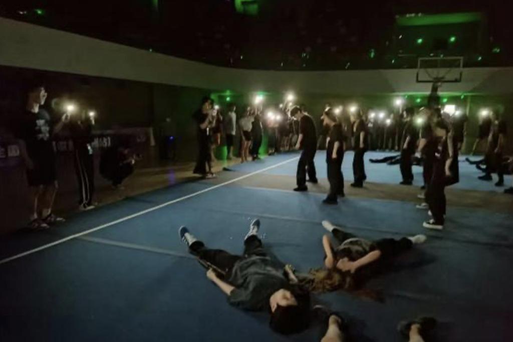 每场比赛前,他们都会进行无数次的彩排,为的就是能够在舞台上呈现出最绝美、最精彩的表演。由于场地限制,他们在完全黑暗的比赛场地打着手机闪光灯进行排练,反复借力、练习,调整每一个细节,不断查漏补缺,尝试完成最完美的动作。
