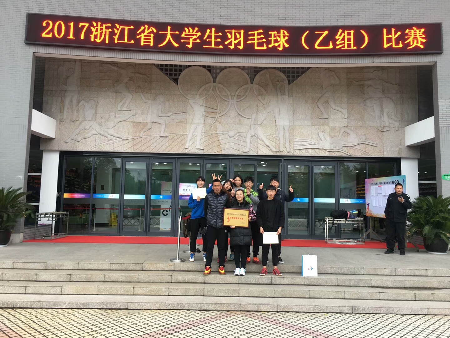 11月15日至18日, 2017年浙江省大学生羽毛球(乙组)比赛在浙江旅游职业学院举行,本次比赛由浙江省教育厅和体育局主办,全省共28所院校参加比赛。我院代表队经过奋力拼搏,荣获女子单打第二名、混合双打第八名的好成绩,并荣获 “体育道德风尚奖”,郑叶卉、黄崇江两位同学被评为优秀运动员。
