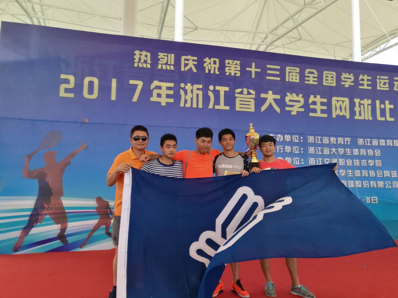 6月2日至8日,2017年浙江省大学生网球比赛在浙江交通职业技术学院举行,来自全省共计30余所高校参加比赛。经过奋力拼搏,我院机电1411班黄鑫、黄哲,电子1411方斌、机制1511姜欣宇四位同学获得男子乙组团体冠军,除此之外,还获得男子乙组单打第四名、第五名的好成绩,公共基础教学部章成斌老师荣获优秀教练员称号。