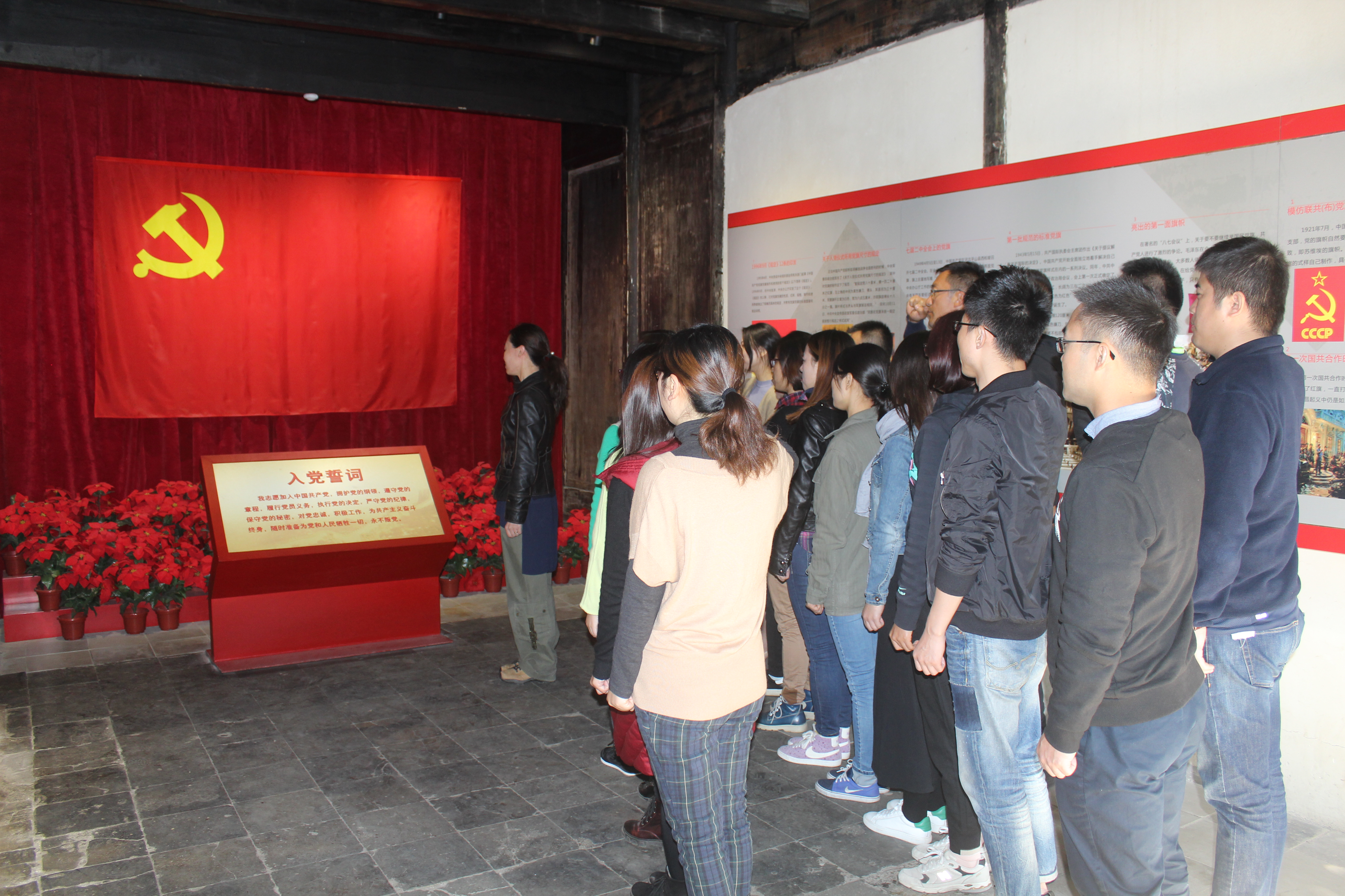 11月12日,全体党员同志赴长兴县,参观被誉为“江南小延安”的长兴新四军苏浙军区旧址纪念馆,接受了一次深刻的革命历史教育。在讲解员的引导下,全体党员参观了新四军苏浙军区纪念馆和“江南小延安”基本陈列。在“铁的新四军”展厅,重温了新四军抗日反顽革命斗争的辉煌史迹;在“江南小延安”展厅,参观了旧址复原场景,身临其境地感受了铁军精神。参观结束后,全体党员干面对鲜红的党旗,举起右手,重温入党誓词。