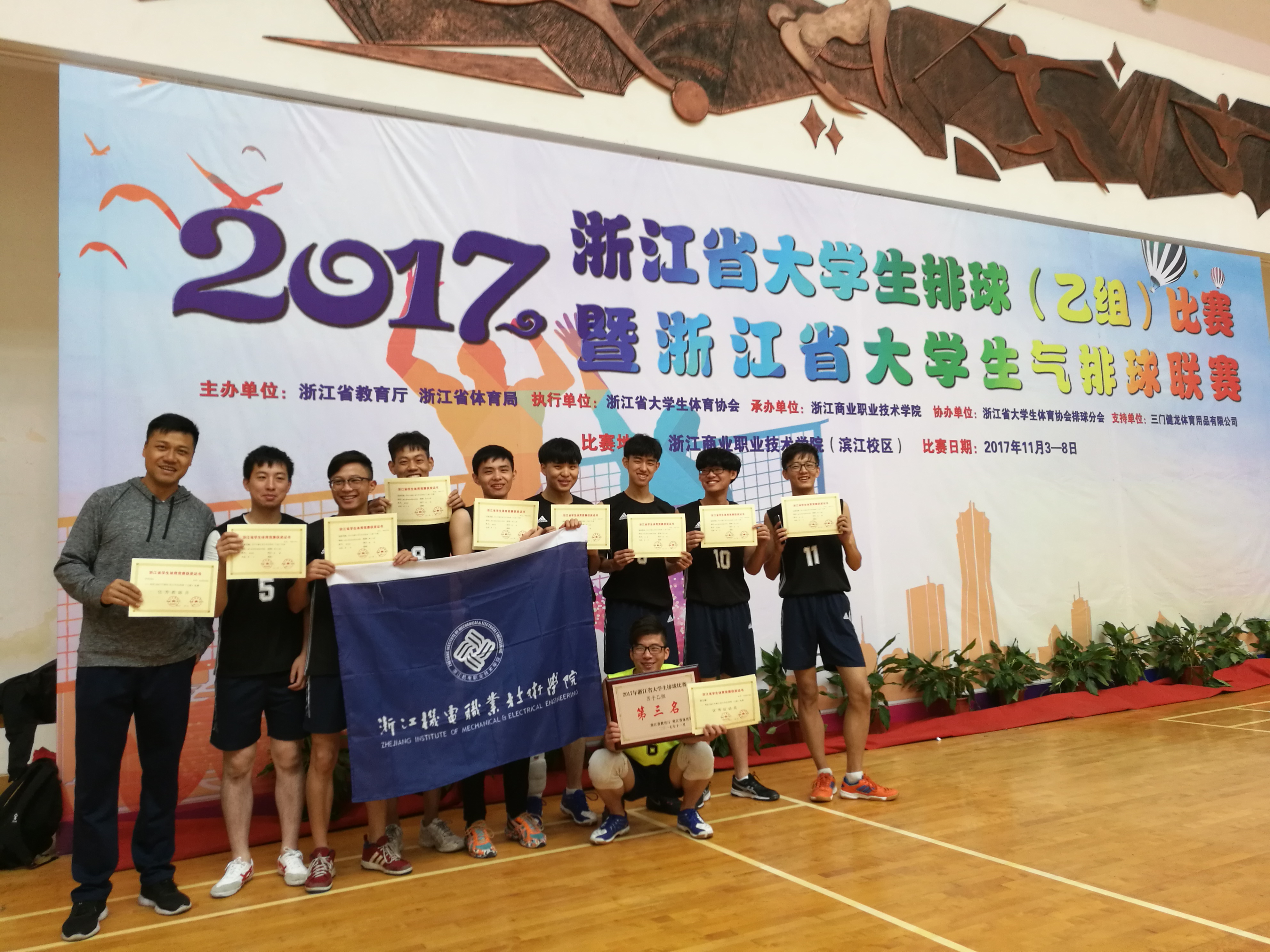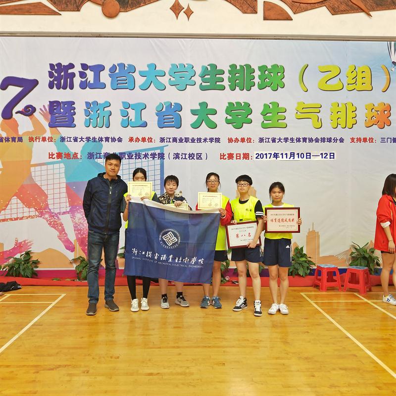 11月3日至12日,浙江省大学生排球(乙组)比赛暨浙江省大学生气排球联赛在浙江商业职业技术学院举行,我院代表队经过奋力拼搏,获得浙江省大学生排球(男子乙组)第三名以及浙江省大学生气排球联赛(女子乙组)第八名的好成绩,并荣获 “体育道德风尚奖”。李亮亮老师被评为优秀教练员,程文璐、施锦涛、徐青青三位同学被评为优秀运动员。