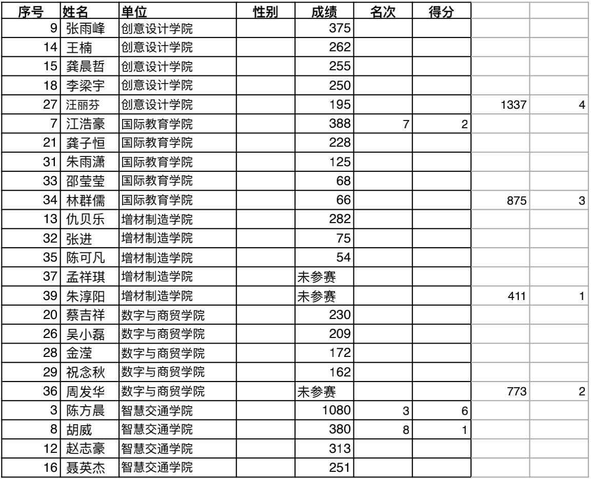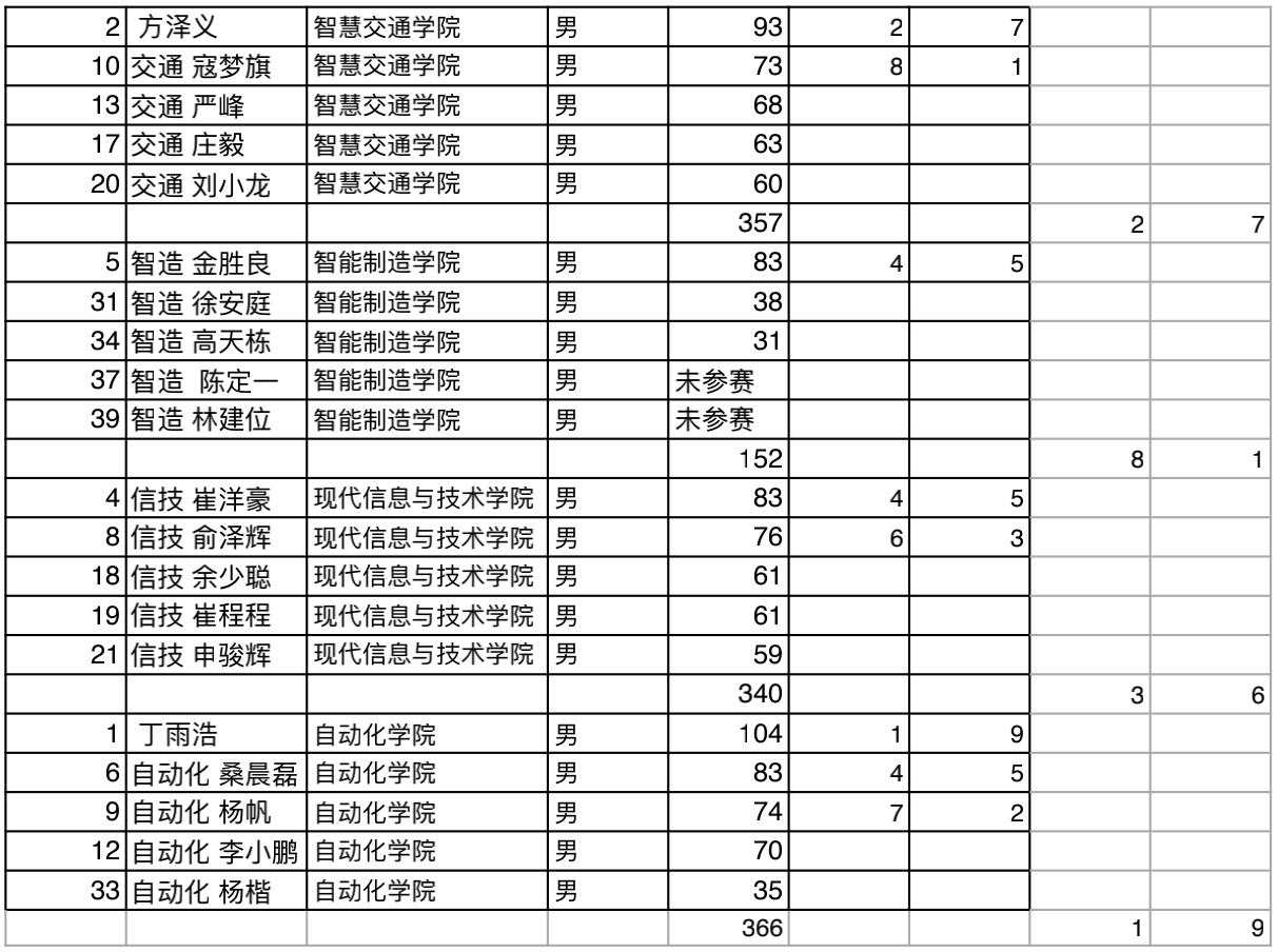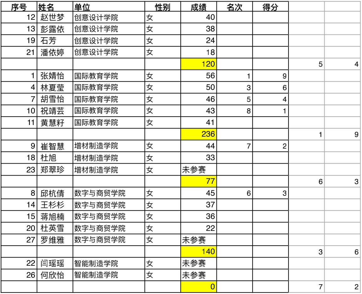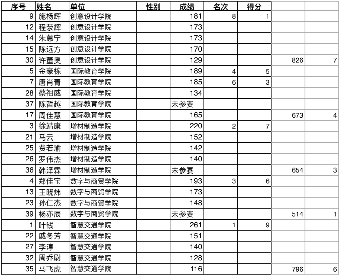 经过精彩比拼,最终自动化学院以总分35分获得第一名,现代信息与技术学院获得第二名,智慧交通学院以获得第三名。创意设计学院、国际教育学院、增材制造学院、数字与商贸学院、智能制造学院位列四至八名。