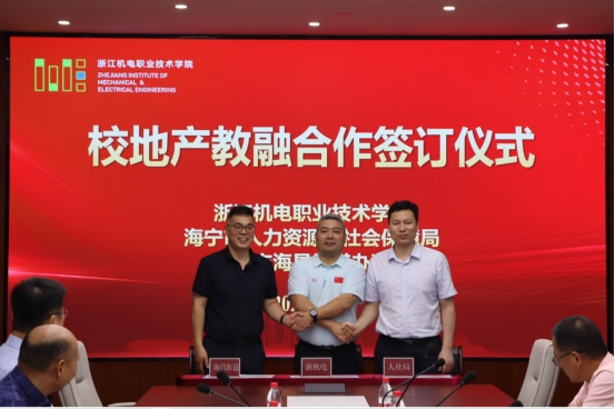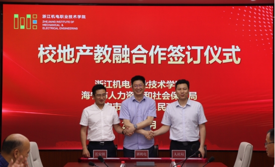 朱旦标主任、李戈副局长、钱国平副主任共同签订产教融合框架协议书