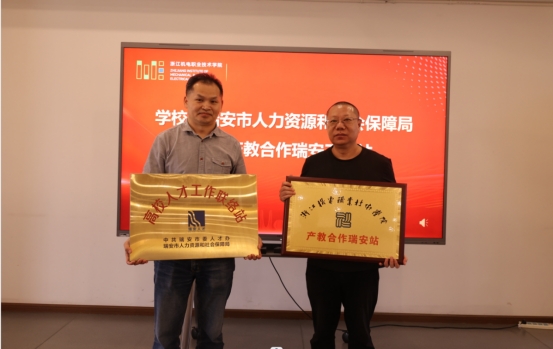程文锋副院长与胡卫军副局长共同为产教融合工作站和人才工作联络站揭牌