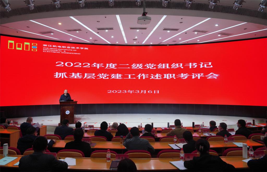 3月6日上午,学校在滨江校区召开2022年度二级党组织书记抓党建工作述职考评会。党委书记汤兆武,校长贺星岳,党委副书记周增逵,副校长周纯江、丁明军,纪委书记王斌,党委委员项建斌、邓劲莲,考核领导小组成员,各二级党组织书记和部分党代会代表、党支部书记代表参加会议。会议由党委副书记周增逵主持。