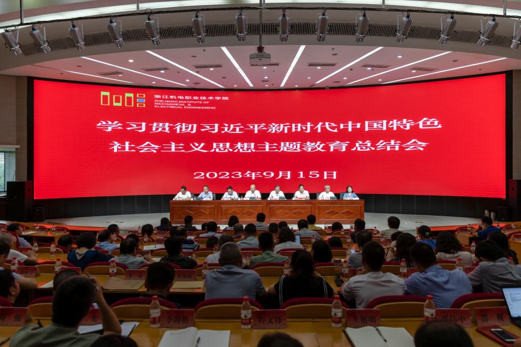 9月15日下午,浙江机电职业技术学院召开学习贯彻习近平新时代中国特色社会主义思想主题教育总结会,对全校扎实开展主题教育进行总结,对主题教育取得的成效再深化,对下一阶段持续巩固深化主题教育成果进行新部署,进一步团结奋斗、凝心聚力,全力打造高等教育强省新名片,奋力创建高水平职业技术大学。校党委书记汤兆武,党委副书记周增逵,副校长王建林、周纯江、丁明军,纪委书记王斌,党委委员项建斌、邓劲莲出席会议。校纪委委员、全体中层干部、党支部书记等参加会议。