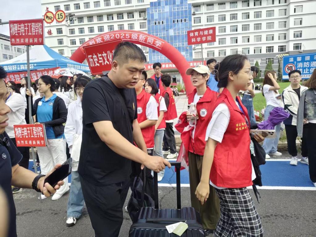志愿者们倾情助力,提供“一站式”入学服务,从校门到宿舍,全程陪伴引导,让新生轻松开启校园生活,毫无后顾之忧。